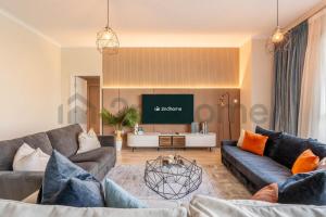 Apartament dysponuje w pełni wyposażonym aneksem kuchennym oraz dwiema łazienkami dla wygody gości. Komfort pobytu podnoszą klimatyzacja, ogrzewanie, pralka oraz łóżeczko dziecięce.