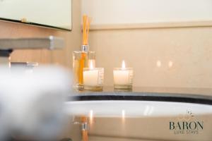 V apartmánu si hosté mohou užít luxusní studio s jednou postelí a soukromou koupelnou vybavenou župany, pantoflemi, sprchovým koutem bez vaničky, vysoušečem vlasů, vířivkou a saunou v pokoji. Kompletní kuchyňský kout zahrnuje moderní spotřebiče jako trouba, varná deska, mikrovlnná trouba, lednice, myčka nádobí a kávovar spolu s čajovými i kávovými potřebami.