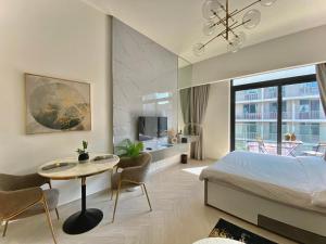 Modernes Studio mit erstklassiger Ausstattung in Dubai bietet einen Dachpool, kostenfreies WLAN und kostenlose Privatparkplätze für Gäste mit eigenem Fahrzeug. Die Unterkunft umfasst ein Zimmer und verfügt über eine klimatisierte Wohnung mit Balkon sowie einem Whirlpool.