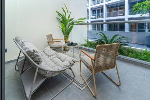 Studio Trendy s vířivkou! Chůzí k Burj Khalifa, ubytování pro 3 osoby, se nachází v Dubaji pouze 1,3 km od fontány Dubai Fountain a jen 1,6 km od nákupního centra Dubai Mall. Tento jednopokojový apartmán nabízí soukromé parkování a bezplatné Wi-Fi připojení po celém objektu.