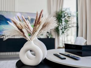 El Trophy - Cozy Elegant Suites, ubicado en Dubái, ofrece alojamiento con aire acondicionado, piscina privada y vistas al jardín. Este apartamento cuenta con una habitación y un balcón con vistas a la piscina. Además, dispone de ascensor y aparcamiento privado gratuito.