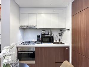 В апартаментах есть полностью оборудованная кухня с плитой, духовкой, микроволновой печью, холодильником, кофемашиной, тостером и электрическим чайником вместе со столовой зоной. В распоряжении гостей одна спальня с одной кроватью и ванная комната с душевой кабиной без порога и ванной. Дополнительные удобства включают гладильные принадлежности (утюг и гладильную доску), стиральную машину, кондиционер, постельное белье и полотенца, шкаф для одежды а также диванную зону и детскую кроватку по запросу.