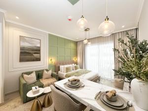 Trophy - Earthy Retreat to klimatyczna kawalerka z klimatyzacją i widokiem na miasto, położona w JVC w Dubaju, zaledwie 10 km od Dubai Autodrome. Apartament oferuje jeden pokój z balkonem, zapewniając gościom komfortowy wypoczynek oraz bezpłatny prywatny parking i darmowe WiFi.