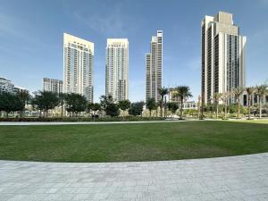Trophy Lux 2BR Creek Harbour Suites s ikonickým výhledem na Burj Khalifa nabízí klimatizované ubytování s bazénem s výhledem v Dubaji a zahrnuje jeden pokoj. Tento apartmán poskytuje bezplatné soukromé parkování a WiFi zdarma, stejně jako přístup na balkon s úchvatným výhledem na město.