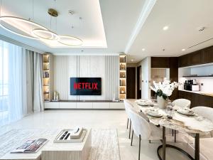 Ubicado en Dubái, Trophy Stays - Coastal Luxe con acceso a la playa - 1 dormitorio ofrece una piscina privada y vistas impresionantes al mar, a pocos pasos de la playa. Este apartamento frente al mar incluye estacionamiento privado gratuito y WiFi gratis en todo el alojamiento.