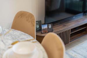 En el interior del apartamento, los huéspedes encontrarán dos dormitorios equipados con camas y dos baños privados provistos con artículos de aseo gratuitos que incluyen champú, acondicionador, jabón corporal y secador de pelo. La cocina americana totalmente equipada cuenta con horno, placa vitrocerámica, microondas, nevera, hervidor eléctrico junto con instalaciones para preparar té y café. Entre las comodidades adicionales hay plancha y tabla para planchar, lavadora disponible además de toallas y ropa de cama para mayor confort.