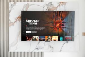 Im Inneren des Apartments befinden sich zwei separate Schlafzimmer mit insgesamt vier Betten, ein Wohnzimmer mit Flachbildfernseher und Schlafsofa sowie eine klimatisierte Atmosphäre ergänzt durch Teppichböden und Federkissen. Die voll ausgestattete Küche ermöglicht Kochen und Lebensmittelaufbewahrung, das Badezimmer ist ausgestattet mit Badewanne oder Dusche, kostenfreien Pflegeprodukten wie Shampoo und Conditioner, Körperseife, Haartrockner sowie einem Ankleidezimmer für zusätzlichen Komfort.