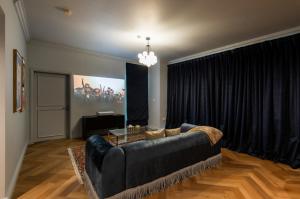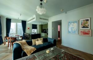 Die großzügige Wohnung verfügt über ein Wohnzimmer, ein separates Schlafzimmer mit zwei Betten sowie zwei Badezimmer mit Dusche und kostenlosen Pflegeprodukten wie Shampoo, Conditioner, Körperseife und Bidets. Zur Ausstattung gehört eine voll ausgestattete Küche mit Kochutensilien sowie Backofen, Herdplatte, Kühlschrank, Geschirrspüler, Mikrowelle, Toaster, Kaffeemaschine und Wasserkocher inklusive Tee- und Kaffeezubehör. Weitere Annehmlichkeiten sind Klimaanlage, Flachbildfernseher mit Steckdosen am Bett zum Laden von Geräten sowie Waschmaschine, Kleiderschrank oder Schrankraum und Bügelmöglichkeiten (Bügeleisen samt Bügelbrett). Außerdem stehen Sofa bzw. Schlafsofa sowie Babybett oder Kinderbett bereit, Handtücher und Bettwäsche sind ebenfalls vorhanden. Ein Safe zur Wertsachenaufbewahrung sowie Wäscheständer gehören ebenfalls zur Ausstattung, die Böden sind gefliest oder aus Marmor.