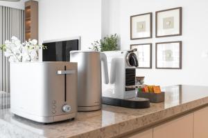 All’interno dell’alloggio si trova una camera da letto arredata con cuscini sintetici non imbottiti in piuma e biancheria da letto insieme agli asciugamani forniti per il massimo comfort. L’angolo cottura è completamente attrezzato con piano cottura, forno, lavastoviglie, microonde, frigorifero e macchina del caffè, completano gli utensili per tè e caffè oltre agli accessori cucina utili alla preparazione dei pasti. Il soggiorno comprende un’area salotto con divano oltre a una cassaforte, sono inoltre disponibili ferro da stiro e asse per stirare.