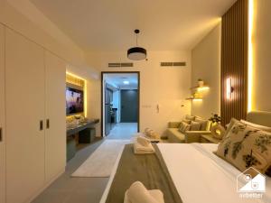Urban Escape Studio z basenem, siłownią i stylowym wnętrzem - położony w Dubaju apartament typu studio oferuje unikalne połączenie nowoczesnego komfortu z dostępem do odkrytego basenu i centrum fitness. Z balkonu rozciąga się widok na miasto, a klimatyzacja zapewnia przyjemny wypoczynek.