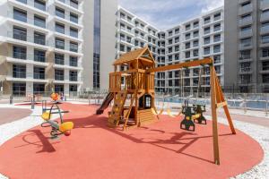 Los huéspedes tienen acceso durante todo el año a la piscina al aire libre y al parque infantil ubicado en las instalaciones. El edificio dispone de ascensor para acceder a los pisos superiores y ofrece seguridad las 24 horas incluyendo detectores de humo y extintores dentro del apartamento. Hay conexión WiFi gratuita en todas las áreas además de servicio privado de check-in/check-out para mayor comodidad.