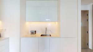 The apartment comprises one bedroom with a private entrance, complemented by a bathroom that features both a bathtub and shower. A fully equipped kitchen includes an oven, stovetop, refrigerator, microwave, dishwasher, toaster, electric kettle as well as tea and coffee making facilities. Additional room amenities include air conditioning, washing machine, ironing facilities with iron and ironing board, bed linen and towels.