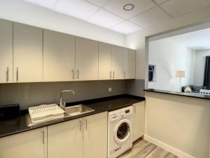 Este apartamento totalmente equipado incluye un dormitorio con una cama y un baño privado que cuenta con bañera, ducha, bidé, secador de pelo y artículos de aseo gratuitos. La cocina americana dispone de electrodomésticos modernos como horno, placa vitrocerámica, lavavajillas, microondas, frigorífico y cafetera junto con utensilios básicos. Entre las comodidades adicionales hay aire acondicionado, plancha con tabla para planchar, lavadora para las necesidades de lavandería y escritorio.