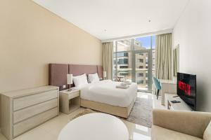 Vzdálený pouhých 400 metrů od pláže Palm West Beach, VayK - Moderní studio s přístupem na pláž je současný apartmán v Dubaji s bezplatným WiFi a venkovním bazénem. Tento jednopokojový prostor nabízí soukromý balkon a klimatizaci pro větší pohodlí.