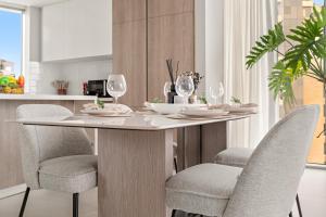 L’appartamento dispone di due letti e aria condizionata in tutti gli ambienti. L’angolo cottura completamente attrezzato è dotato di elettrodomestici moderni tra cui forno, piano cottura, lavastoviglie, microonde, frigorifero, macchina per il caffè, bollitore elettrico, tostapane e barbecue. I tre bagni sono forniti di docce o vasche da bagno insieme ad asciugacapelli, uno dei bagni include inoltre una sauna privata per un relax extra. Tra i comfort della camera figurano asciugamani e biancheria da letto oltre a ferro da stiro con asse.