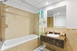 Questo ampio appartamento climatizzato dispone di due camere da letto e due bagni dotati di bidet. Gli ospiti possono usufruire di un angolo cottura ben attrezzato con piano cottura, frigorifero, lavastoviglie, forno, microonde, tostapane e completo set di utensili da cucina oltre a servizi per tè e caffè. Tra gli altri comfort vi sono biancheria da letto, asciugamani, ferro da stiro, lavatrice, cassaforte e un’area salotto con divano e scrivania.