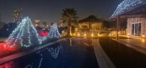 La villa Victory Heights, situata a Dubai, offre una piscina all'aperto e una vasca idromassaggio disponibili tutto l'anno. Questa spaziosa villa dispone di sei camere da letto con un totale di otto letti e quattro soggiorni, vantando viste sul giardino dal balcone e dalla terrazza.