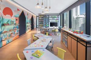 Guests have access to numerous amenities such as a fitness centre, outdoor year-round swimming pool including a rooftop pool and pool bar. On-site services feature a 24-hour front desk with concierge support, express check-in/out options, lift access to upper floors including the room itself and private parking facilities. Additional conveniences include free WiFi coverage throughout the property along with children’s playgrounds on site.