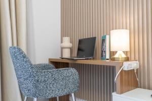 Inside the apartment, guests will find two beds, a seating area, and one bathroom equipped with slippers, complimentary toiletries including shampoo and conditioner, a bidet, toilet, and hairdryer. The fully equipped kitchen features an oven, stovetop, refrigerator, microwave, toaster as well as tea and coffee making facilities paired with a dining table for comfortable meal preparation.