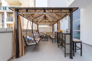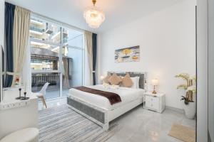 Vogue Pearlz By Banube en Al Furjan, Dubái, ofrece un apartamento de lujo con una habitación, equipado con todas las comodidades y un amplio balcón. Situado a solo 9 km de The Walk en JBR, este alojamiento cuenta con aparcamiento privado y WiFi gratuito, además de acceso a una piscina infinita y un gimnasio. Los huéspedes pueden disfrutar de impresionantes vistas a la piscina desde el apartamento.