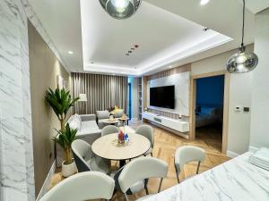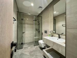 Le logement comprend une chambre accompagnée de deux salles de bains, une cuisine entièrement équipée avec coin cuisine ainsi que des équipements modernes tels que la climatisation et un lave-linge. Les hôtes peuvent se détendre sur le balcon ou profiter des divertissements proposés par la télévision écran plat.