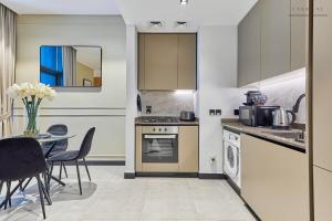 The apartment features one bedroom furnished with two beds along with a living area that includes a sofa bed and seating space. The fully equipped kitchen contains a stovetop, refrigerator, oven, microwave, coffee machine, toaster, electric kettle as well as tea and coffee making facilities. Additional room amenities include air conditioning with individual controls, a walk-in shower in the bathrooms stocked with complimentary toiletries such as body soap and shampoo, an ironing board with iron plus drying rack. Storage options include wardrobes and a safe deposit box while entertainment comes via flat-screen TV offering satellite and cable channels.