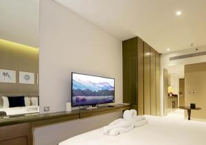 Apartmán Waterfront Studio s balkonem u Dubai Mall nabízí soukromý bazén a bezplatné Wi-Fi. Nachází se v Dubaji, pouhé 2 km od Burj Khalifa a 1,9 km od fontány The Dubai Fountain. Tento apartmán má jednu prostornou místnost s výhledem na město a jezero, což zaručuje pohodlný pobyt blízko významných památek.