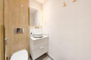 L’appartamento dispone di una camera da letto con due letti e un soggiorno separato arredato con divano e TV a schermo piatto. Gli ospiti possono preparare i pasti nella cucina completamente attrezzata che include frigorifero, microonde, bollitore elettrico, macchina del caffè, tavolo da pranzo e set per tè e caffè. Il bagno offre una doccia walk-in senza gradini oltre a shampoo, balsamo, sapone per il corpo, servizi igienici privati in camera e una sauna privata interna.