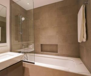Przestronny apartament składa się z dwóch sypialni wyposażonych w dwa łóżka oraz dwóch łazienek z wanną z hydromasażem i suszarką do włosów. W pełni wyposażony aneks kuchenny zawiera płytę grzewczą, lodówkę, piekarnik, zmywarkę i mikrofalówkę oraz zestaw do parzenia kawy i herbaty. Dodatkowo w pokoju znajdują się klimatyzacja, ogrzewanie, pościel, ręczniki, żelazko, biurko do pracy oraz pralka.